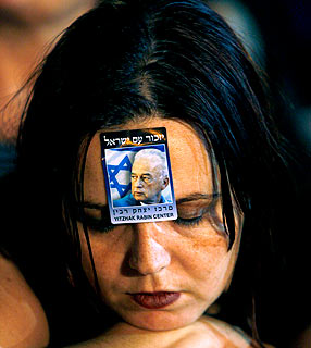 A praça Yitzhak Rabin de Tel-Aviv, tradicional ponto de manifestantes em Israel, estava repleta de soldados e policiais desde às 16 horas. A multidão foi ocupando-a aos poucos. Muitos escoteiros sentaram-se rodeando dezenas de velas acesas. Havia pela praça muitas ilhas iguais. Em algumas, cantava-se a Canção da Paz, noutras escreviam-se poemas ou cartas em memória do primeiro-ministro assassinado. Uma judia francesa, entrevista por canais de TV franceses, pedia a pena de morte para o assassino confesso, Yigal Amir. E a justificava: “Se há países que condenam a morte traficantes de drogas, por que não dar uma lição exemplar a quem matou um líder político?”