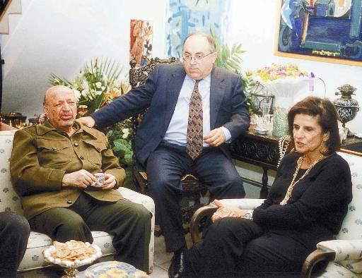 Voaram com o presidente da OLP e da Autoridade Palestina a Tel-Aviv apenas Abu Mazem e Abu Ala, dois assessores. No apartamento dúplex da viúva Leah Rabin, em Ramat-Aviv, um bairro ao Norte onde também vive a família Shimon Peres, Arafat sentou-se numa poltrona sem estar com a cabeça coberta pela tradicional kefiah, e declarou: “Perdeu-se um grande homem que fez a paz dos bravos com a gente”.