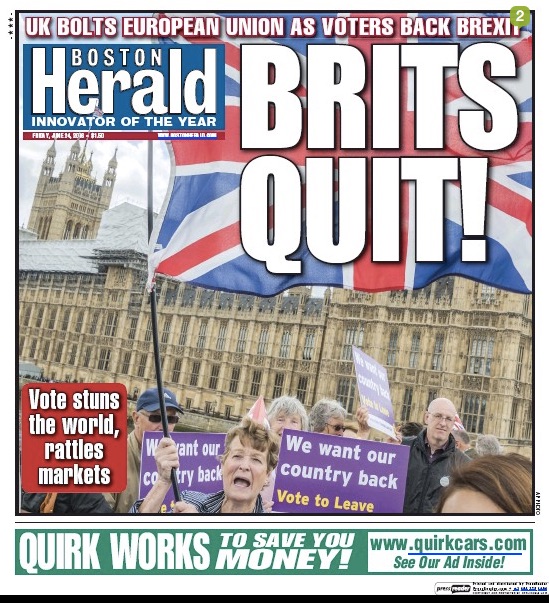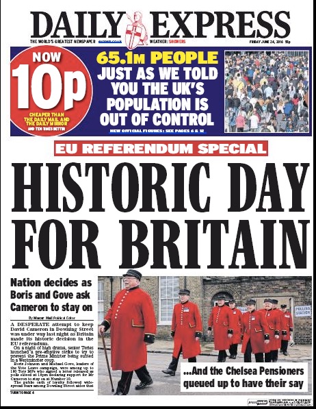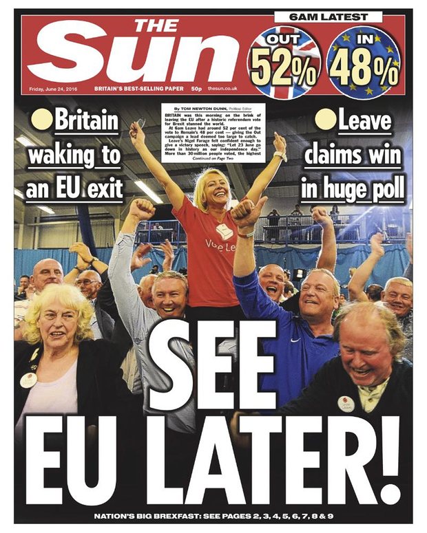 A saída do Reino Unido da União Europeia pegou os jornais britânicos muito além do horário de fechamento normal. Mas a maioria deles deu um jeito de publicar a notícia histórica, para muitos inesperada. A revista The Economist saiu, como todas as semanas, na quinta-feira, o dia do plebiscito, com a capa
