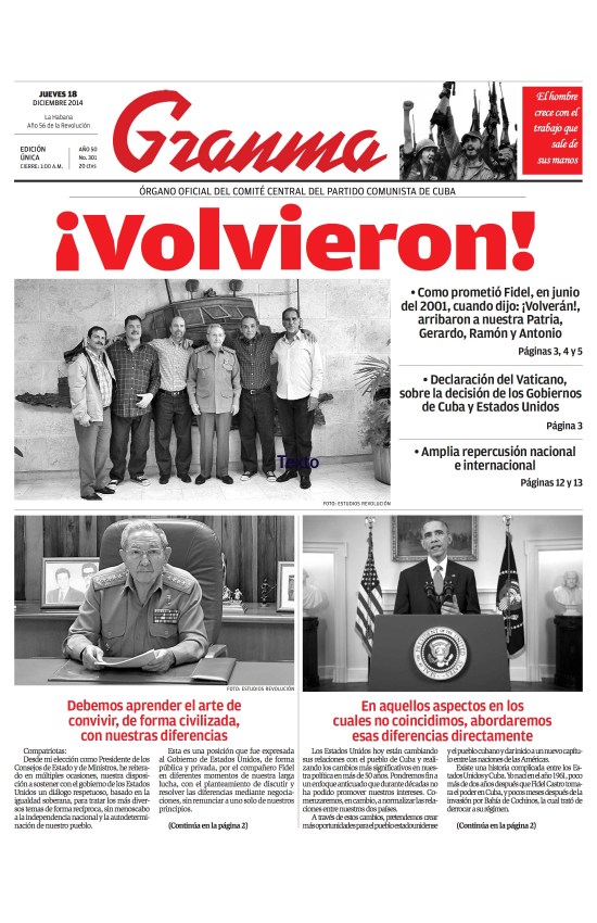 Os novos heróis cubanos são os 11 tripulantes do navio mercante Hermann que resistiram com canivetes, chave de fenda e machados à uma inspeção antidroga da guarda costeira dos Estados Unidos, em águas internacionais do golfo de Yucatã, em 30 de janeiro, quando transportavam uma carga de cromo para Tampico, no México. A bandeira que defenderam, panamenha, já está exposta no Museu da Revolução. Cada um deles vai receber a mais alta condecoração nacional pela bravura e pelo comportamento comunista exemplar demonstrados diante da “pirataria ianque”. Uma impressionante multidão em Havana os recebeu diante da missão de interesses norte-americanos em Cuba, na avenida Malecon, à beira-mar, onde um cartaz antigo  anuncia: “Señores imperialistas, no les tenemos absolutamente ningun miedo”.