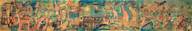 Ao fim de cada dia de trabalho, Cícero se sentia um náufrago, encharcado de suor. Pelo painel, começaram a desfilar procissões, danças, sonhos, delírios, Recife, o nordeste brasileiro, fantasias, carros-de-boi, engenhos, bichos, senzalas, até um autorretrato, e tudo sob a luz amarela da caatinga e do canavial. Atribuíram-lhe certa influência de Marc Chagall, então desconhecido no Brasil. Surrealista, rotularam-no. “Surnudista”, inventou o sociólogo pernambucano Gilberto Freyre. Um “fenômeno inexplicável a desafiar a geografia, a cronologia e a genealogia”, descreveu o jornal francês Le Monde. “Maluco!”, elogiou Mário de Andrade, no Diário Nacional. Em carta a Tarsila do Amaral, ele acrescentaria depois, em 1931: Cícero Dias está fazendo com que “rachassem as paredes da Escola Nacional de Belas Artes”. E, no entanto, a primeira exposição aconteceu num hospício, a Policlínica, na Praia Vermelha, porque nenhuma galeria do Rio se interessava por arte moderna, ou tinha espaço para acomodar obra tão gigantesca, decantada como a maior da América Latina. Literalmente, coisa de louco.